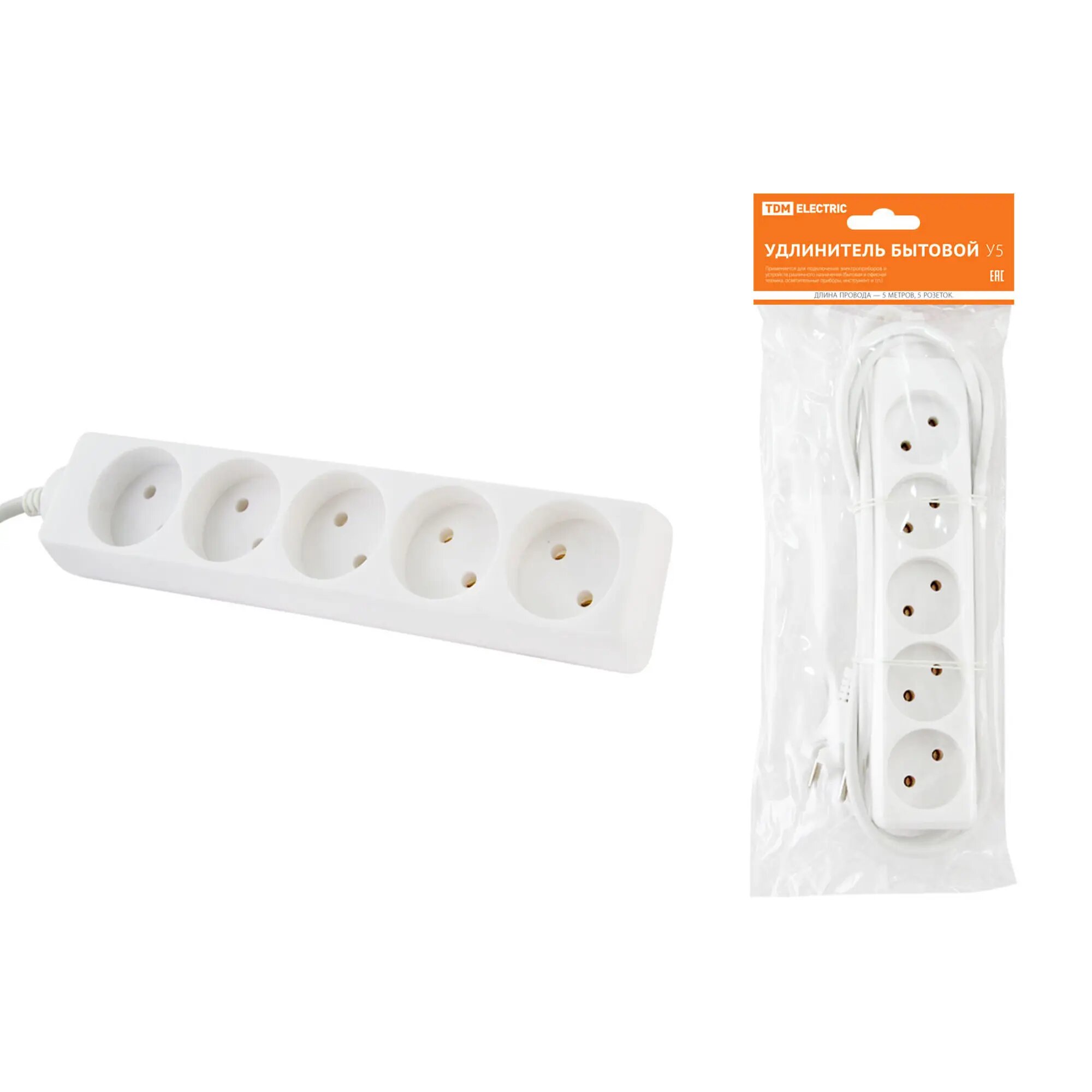 Удлинитель бытовой TDM У5 5 гнезд 5 метров ПВС 2/0,75мм2 белый 10А 250В без заземления