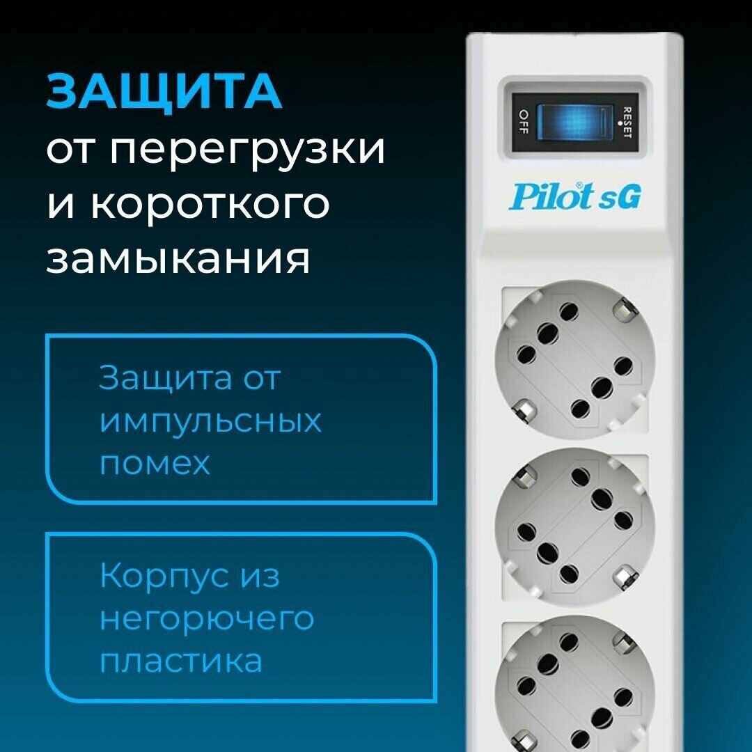 Сетевой фильтр Pilot SG 5x10, 5 метров, 5 розеток, с/з, 10А / 2200 Вт, белый