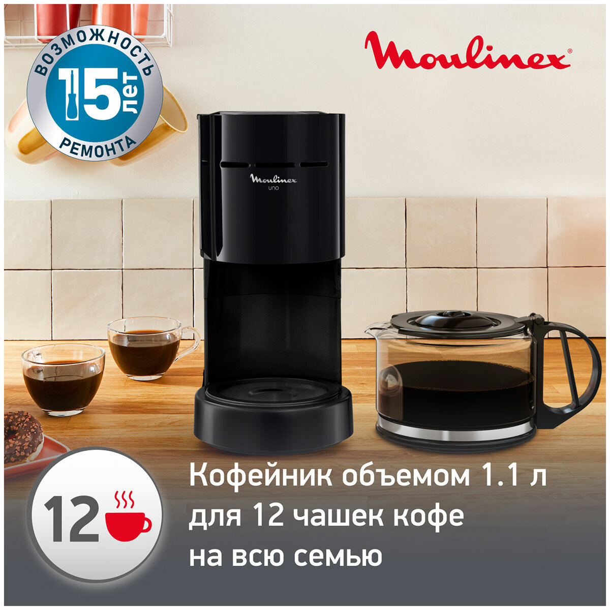 Кофеварка капельная Moulinex Uno FG121811, черный информация: