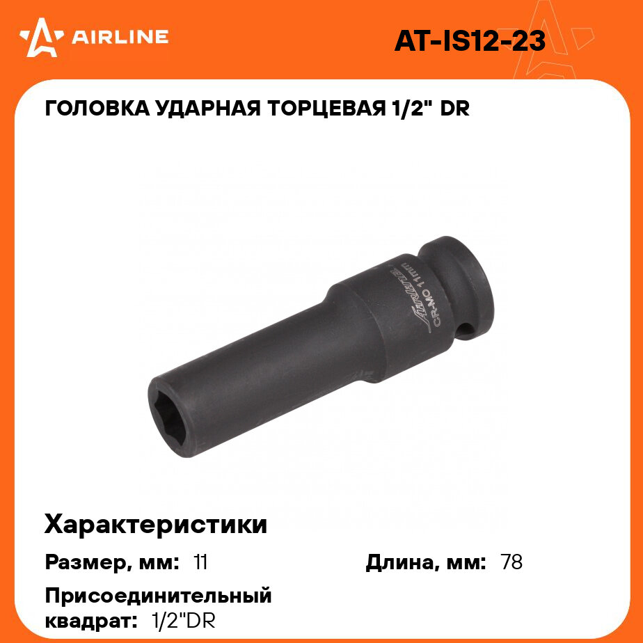 Отзывы на Головка ударная торцевая 1/2" DR шестигранная 11мм L=78 мм AT-IS12-23 AIRLINE