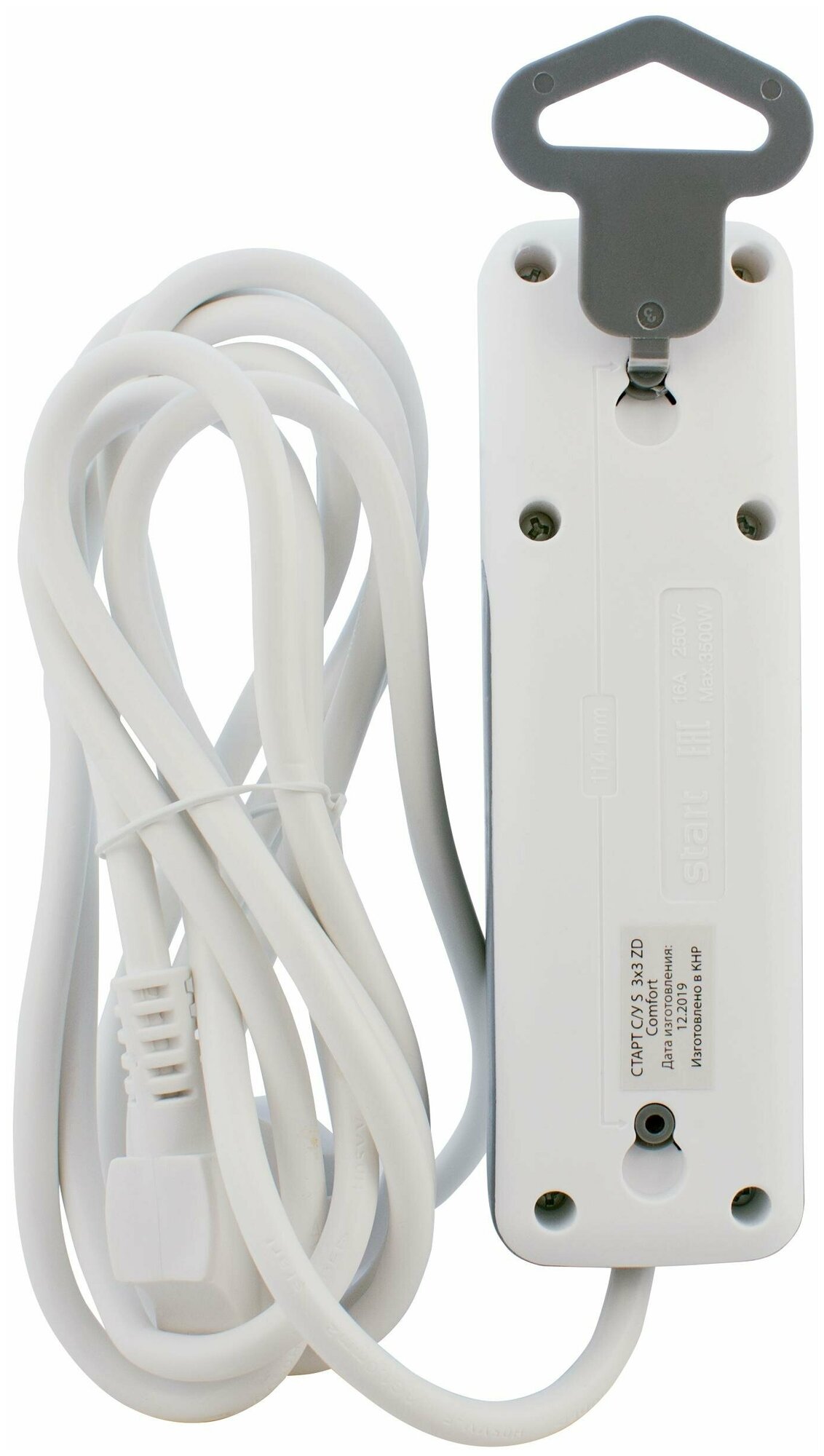 Сетевой удлинитель Старт С/У S 3x3 ZD Comfort, 3м, белый/серый [17419]