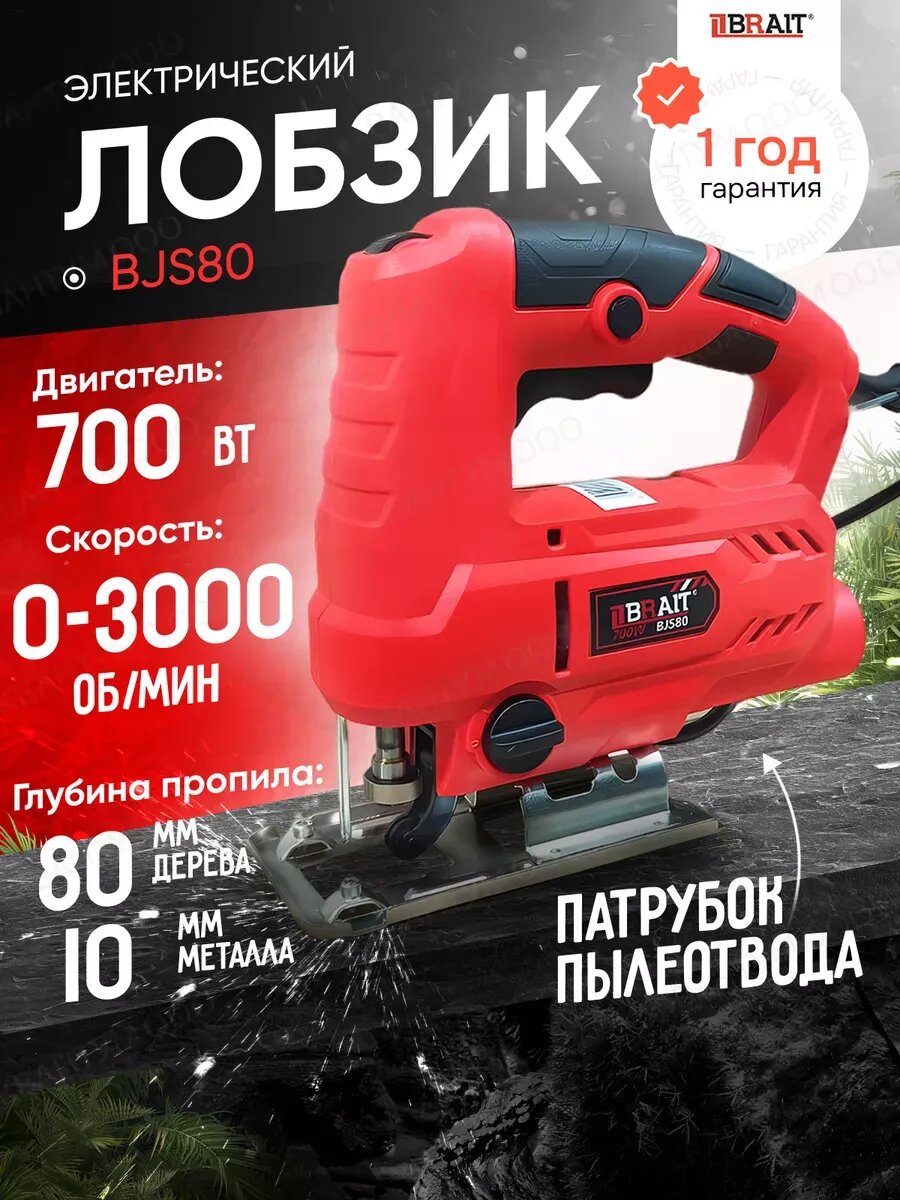 Лобзик электрический BRAIT BJS80 700 Вт, глубина реза 80 мм, маятниковый ход