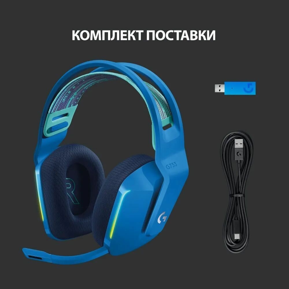 Беспроводная игровая гарнитура Logitech (G) G733 RGB с микрофоном, объемным звуком 7.1, крепление на голове, шутер от первого лица в жанре Battle Royale информация:
