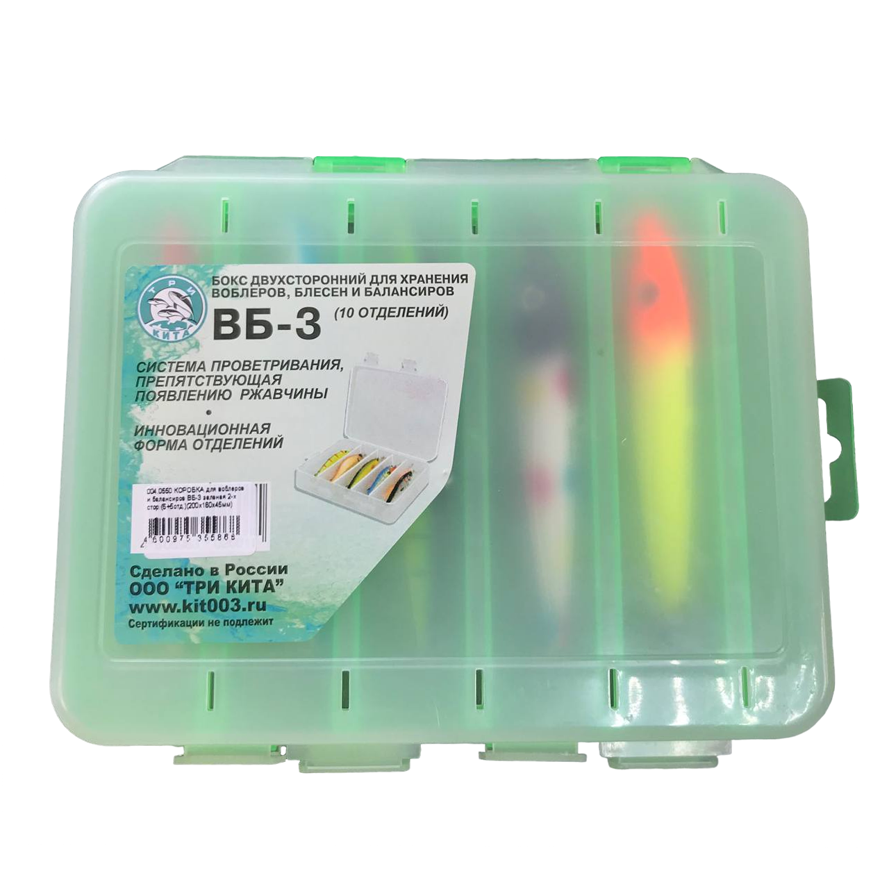 10 цен на Коробка Три Кита для воблеров и балансиров ВБ-3 зеленая 2-х стор.(5+5отд.)(200х160х45мм)