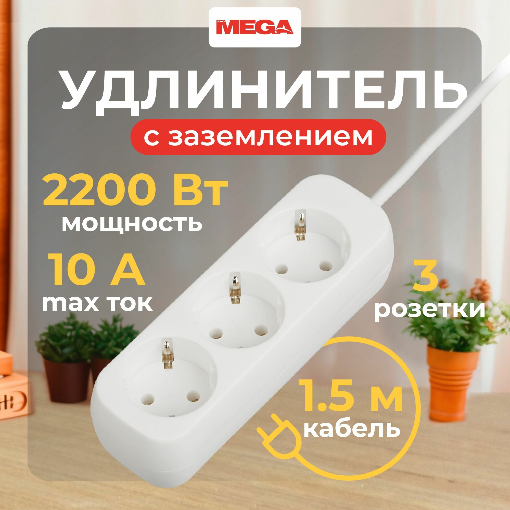 Удлинитель ProMega, сетевой фильтр, 2200 Вт / 10 А, 3 розетки, 1,5 метра 535 ₽