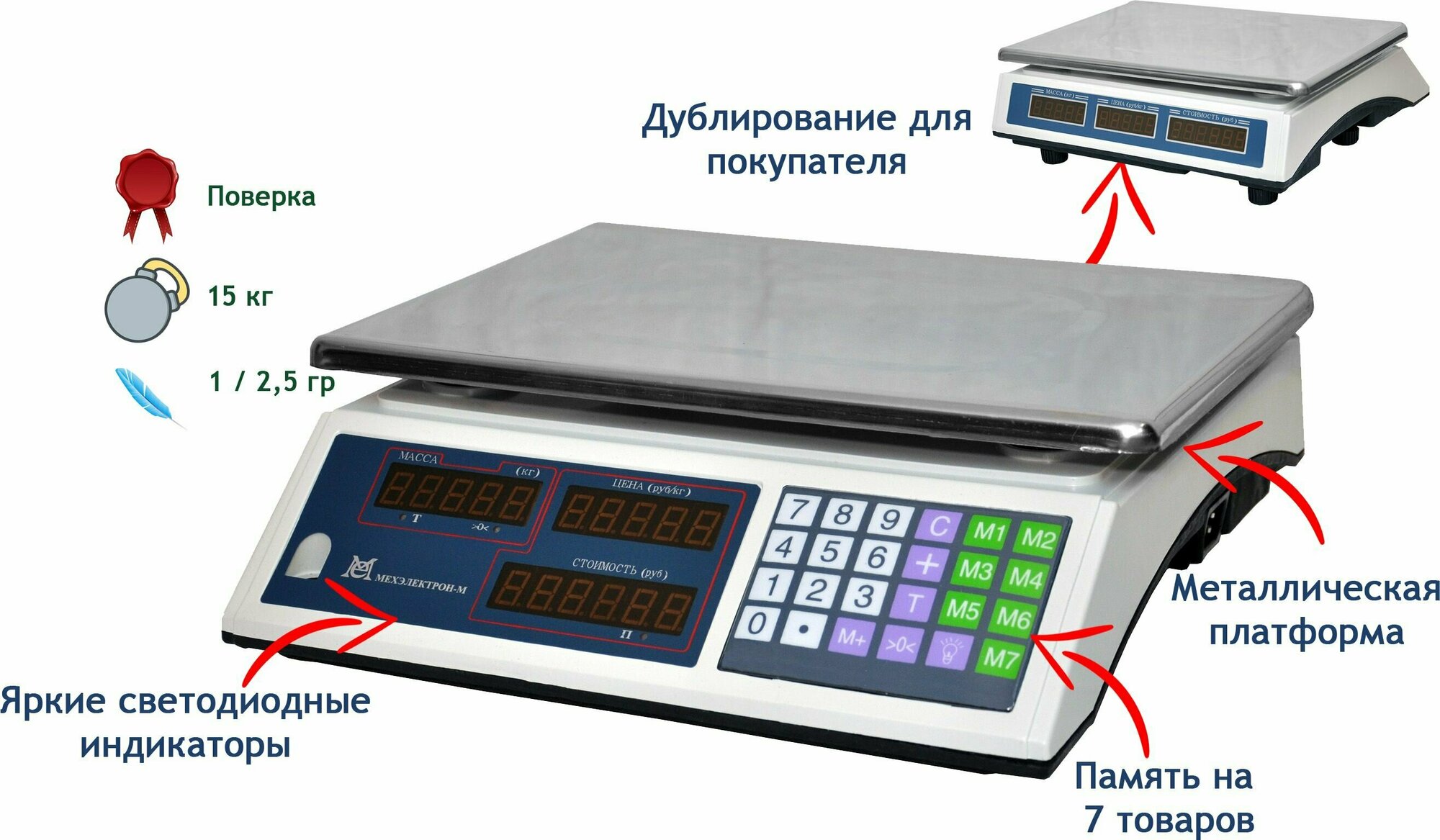 Симпатичные торговые весы Мехэлектрон ВР 4900-15-5 ДБ-02 (LED, до 15 кг) информация: