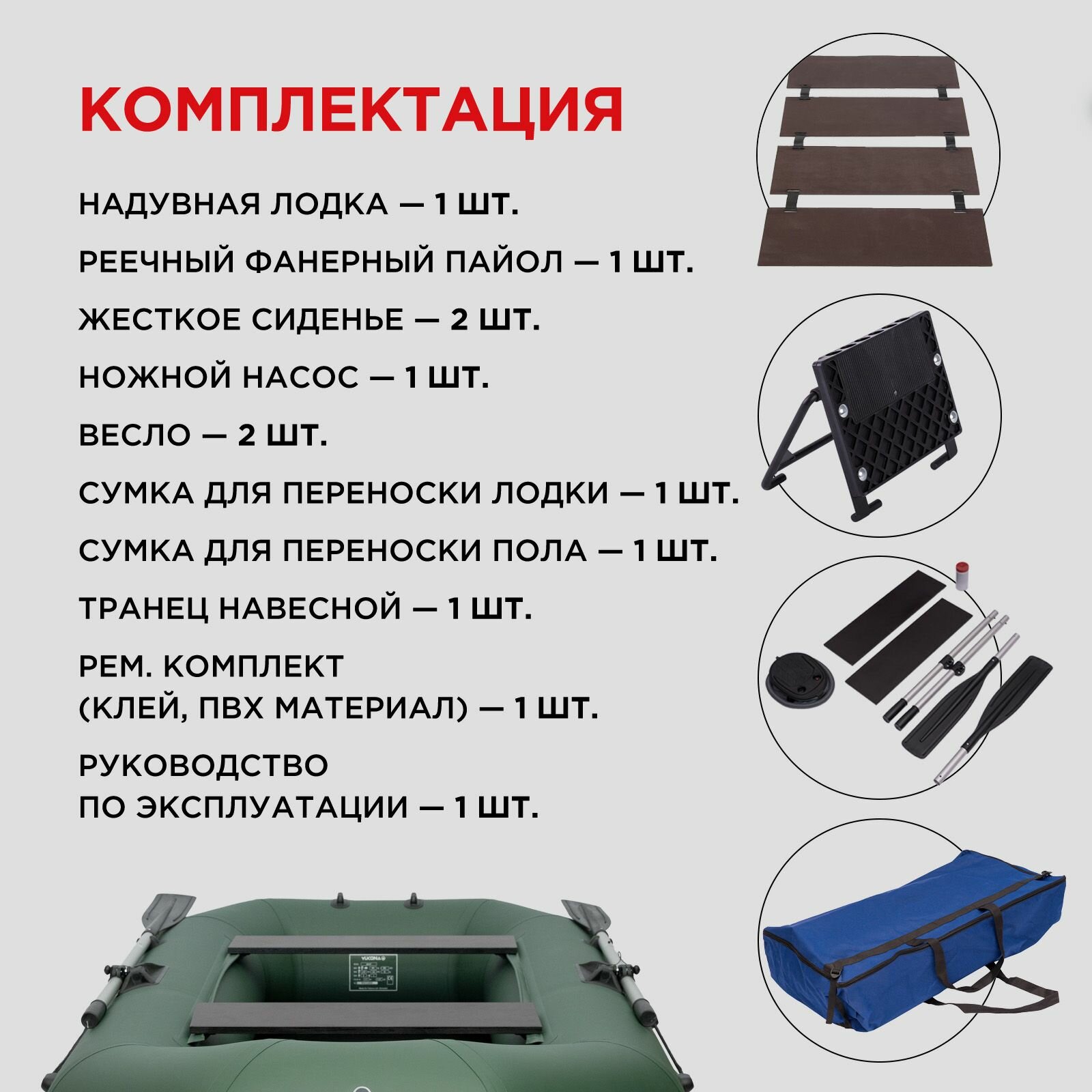 Лодка ПВХ YUKONA 280 GT под мотор двухместная надувная гребная для рыбалки, зеленая информация: