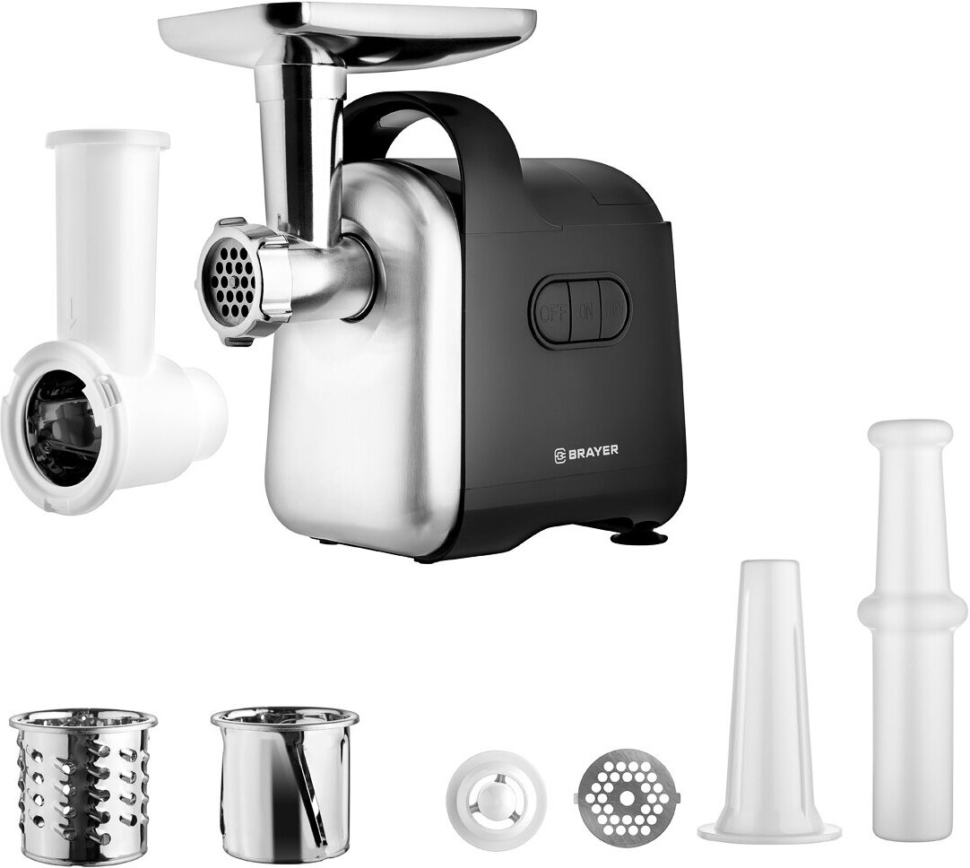 Отзывы на Мясорубка BRAYER BR1602, 2000 Вт, реверс, насадки кеббе, колбасы, овощей, отсек для храненения, 2 диска, черный