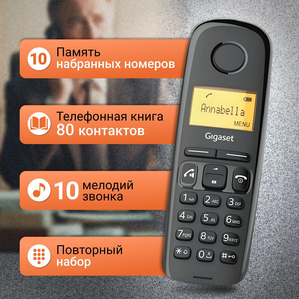 Радиотелефон GIGASET A270A AM RUS черный автооветчик АОН