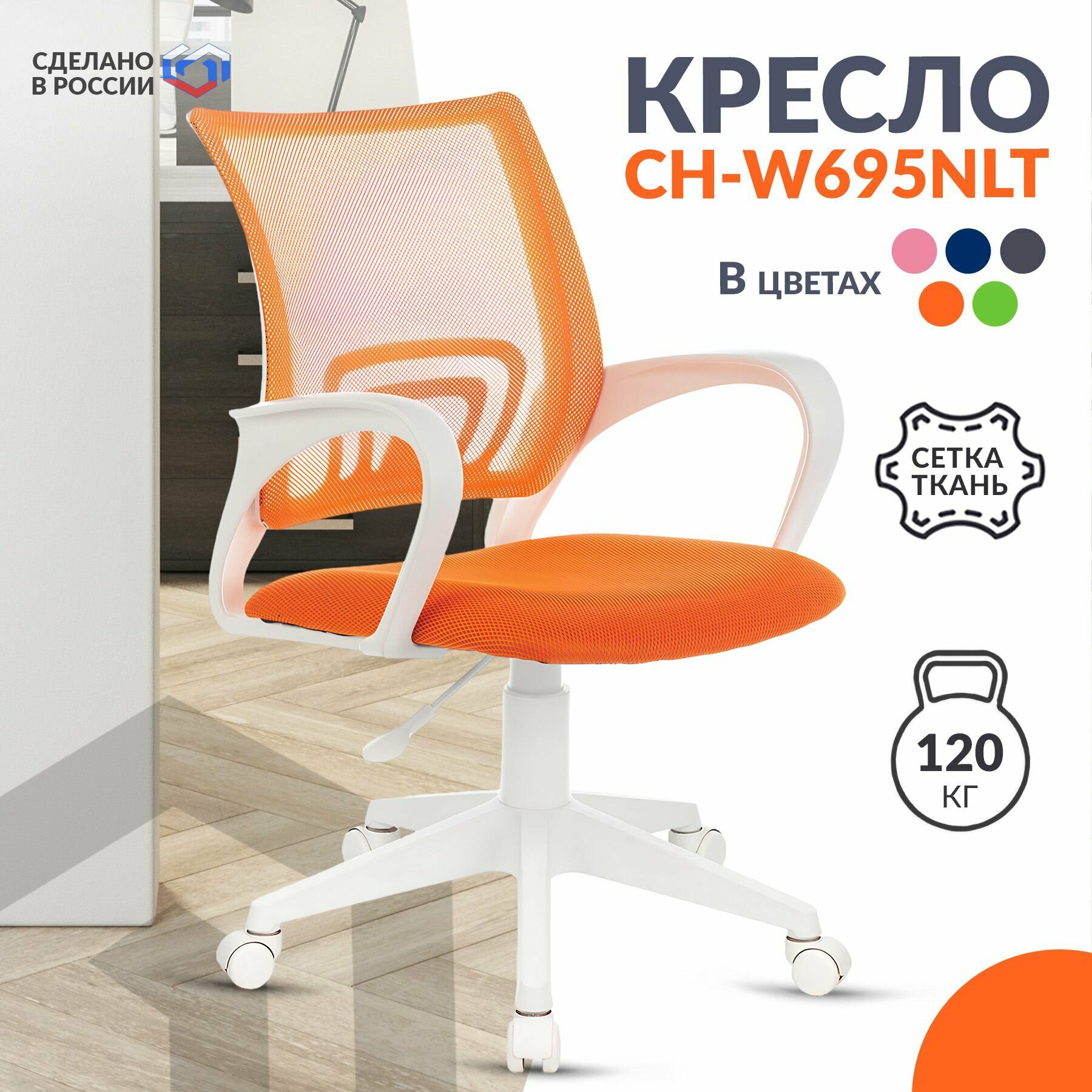 Кресло компьютерное CH-W695NLT оранжевый, сетка, ткань / Кресло для оператора, школьника, ребенка, офисное