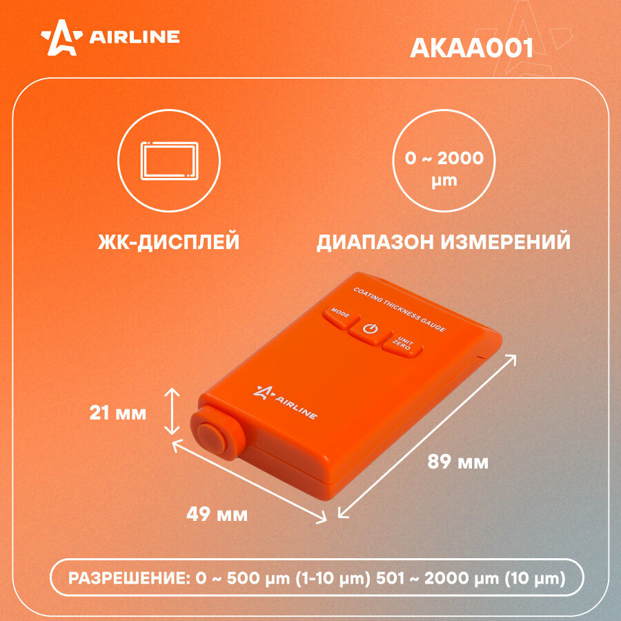 Airline AIRLINE AKAA001 Толщиномер лакокрасочного покрытия, черные/цветные металлы AKAA001
