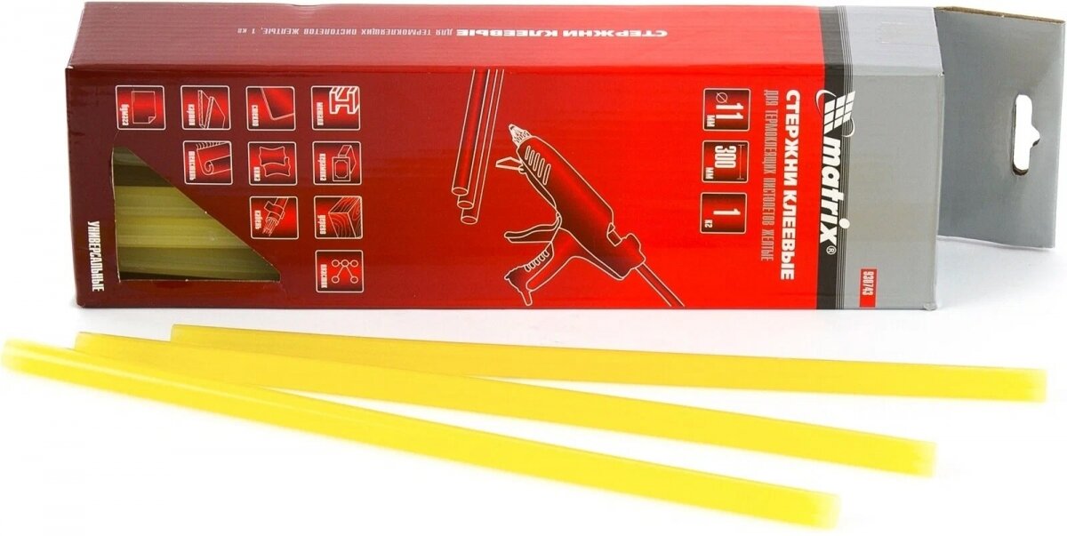 Отзывы на MATRIX Стержни клеевые, 11 мм, L-300 мм, 1 кг, желтый Matrix, ( 930743 )