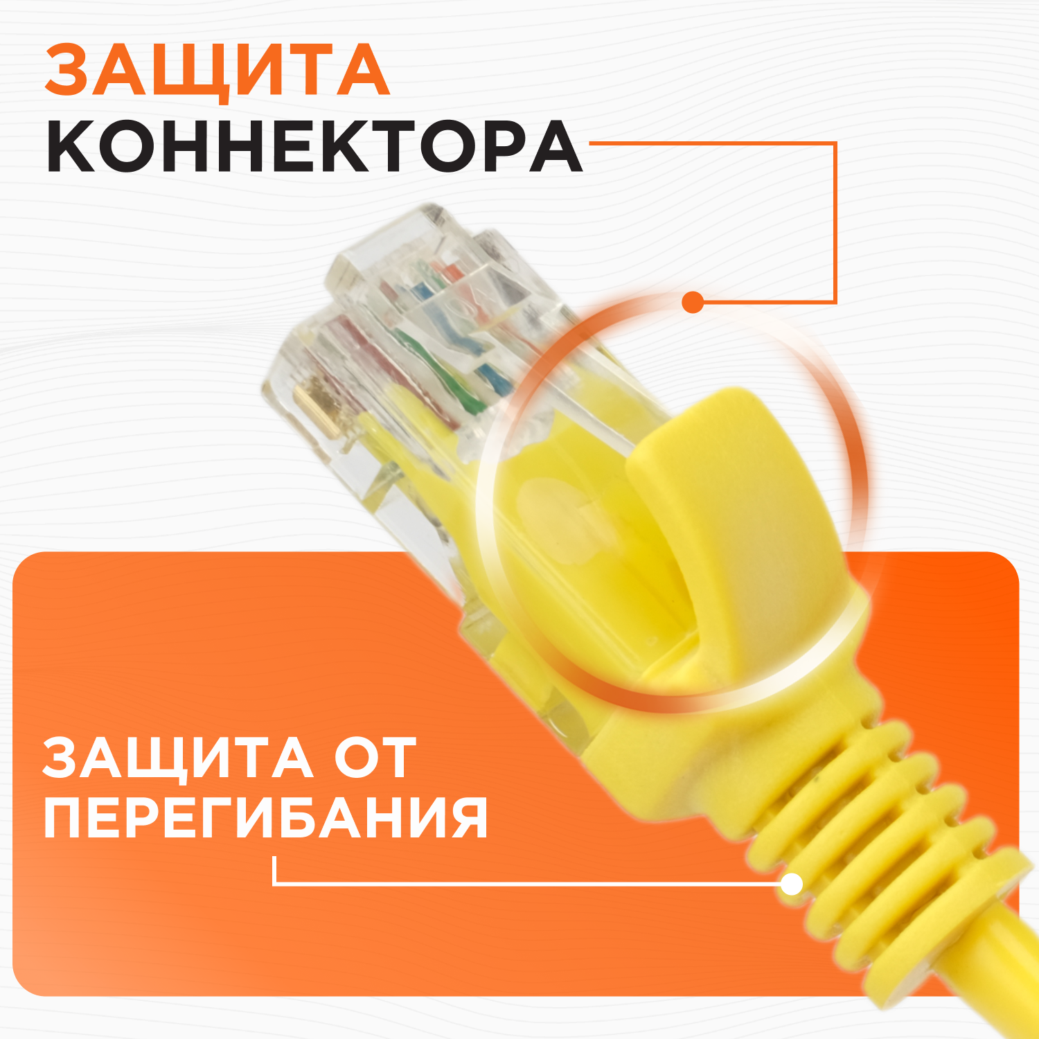 Патч-корд PP12-10M/Y литой (molded), UTP, cat.5E, 10м, 4 пары, 26AWG, алюминий омедненный, 1 шт, желтый 300 ₽