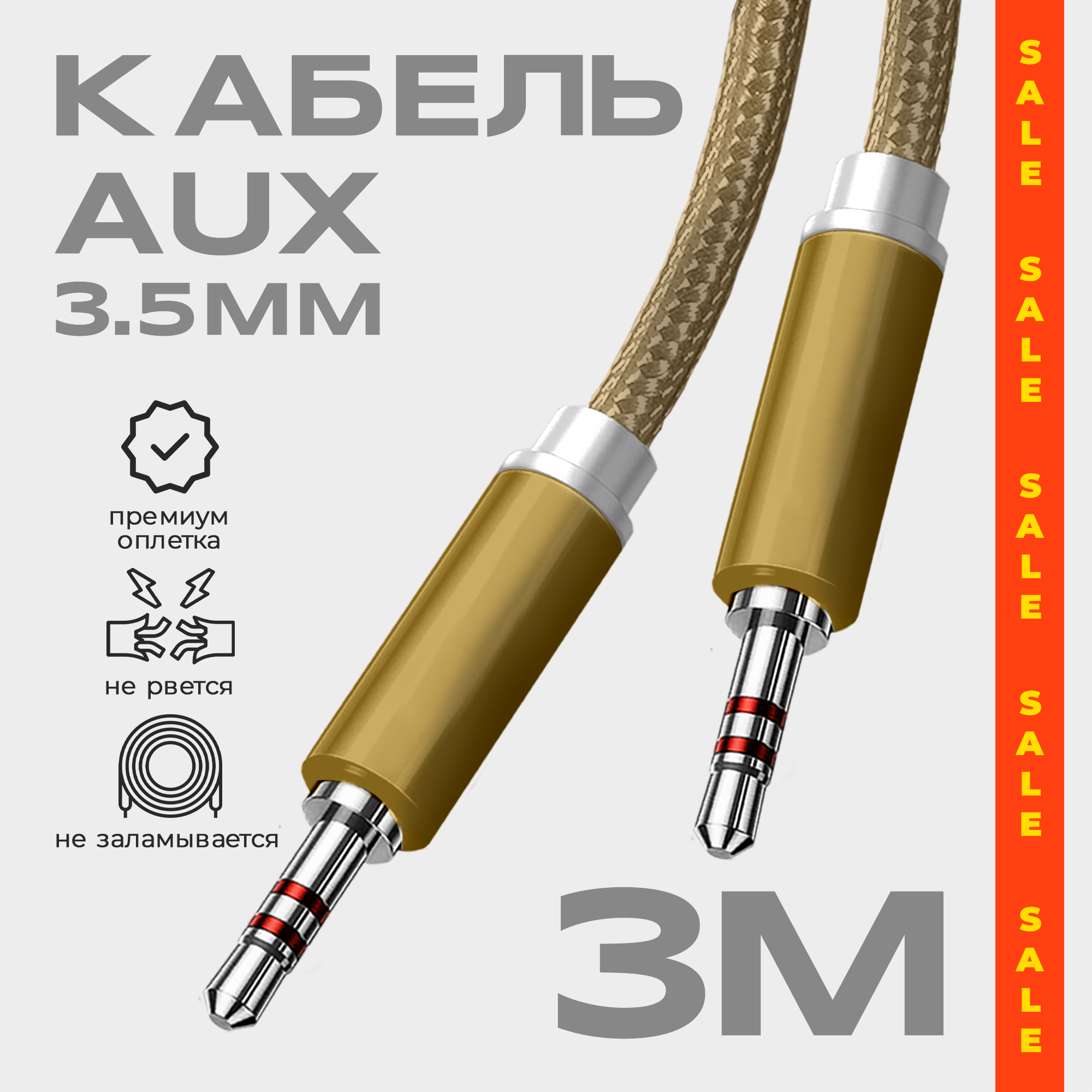 10 цен на Кабель AUX 3.5mm в тканевой оплетке WALКЕR WCA-520, mini jack, двусторонний, 3м, прямой штекер, золотой / акустический шнур в телефон, аудио автомобиль