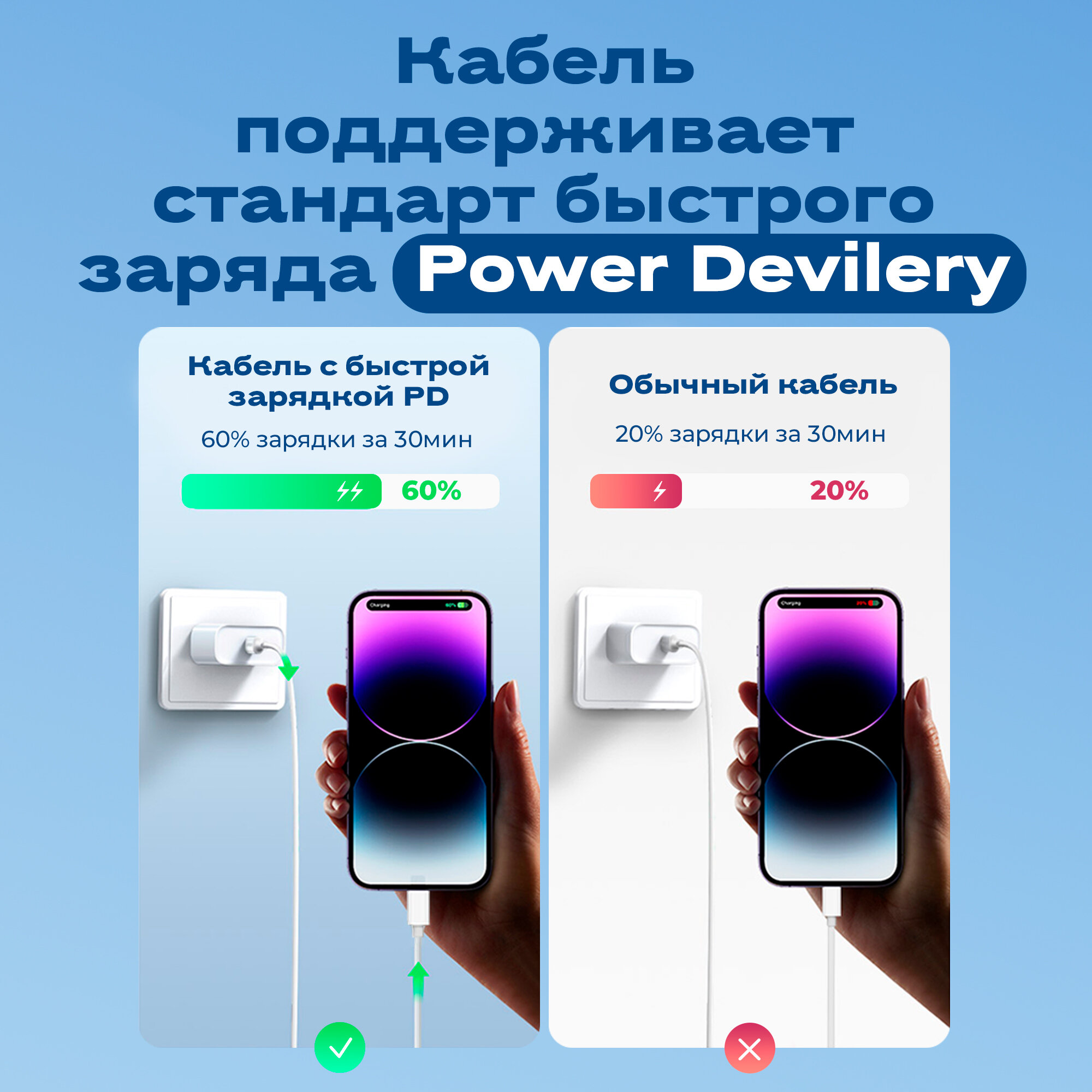 Кабель Type-C/Lightning, для iPhone/iPad/iPod, поддержка MFi, белый, длина 1 м