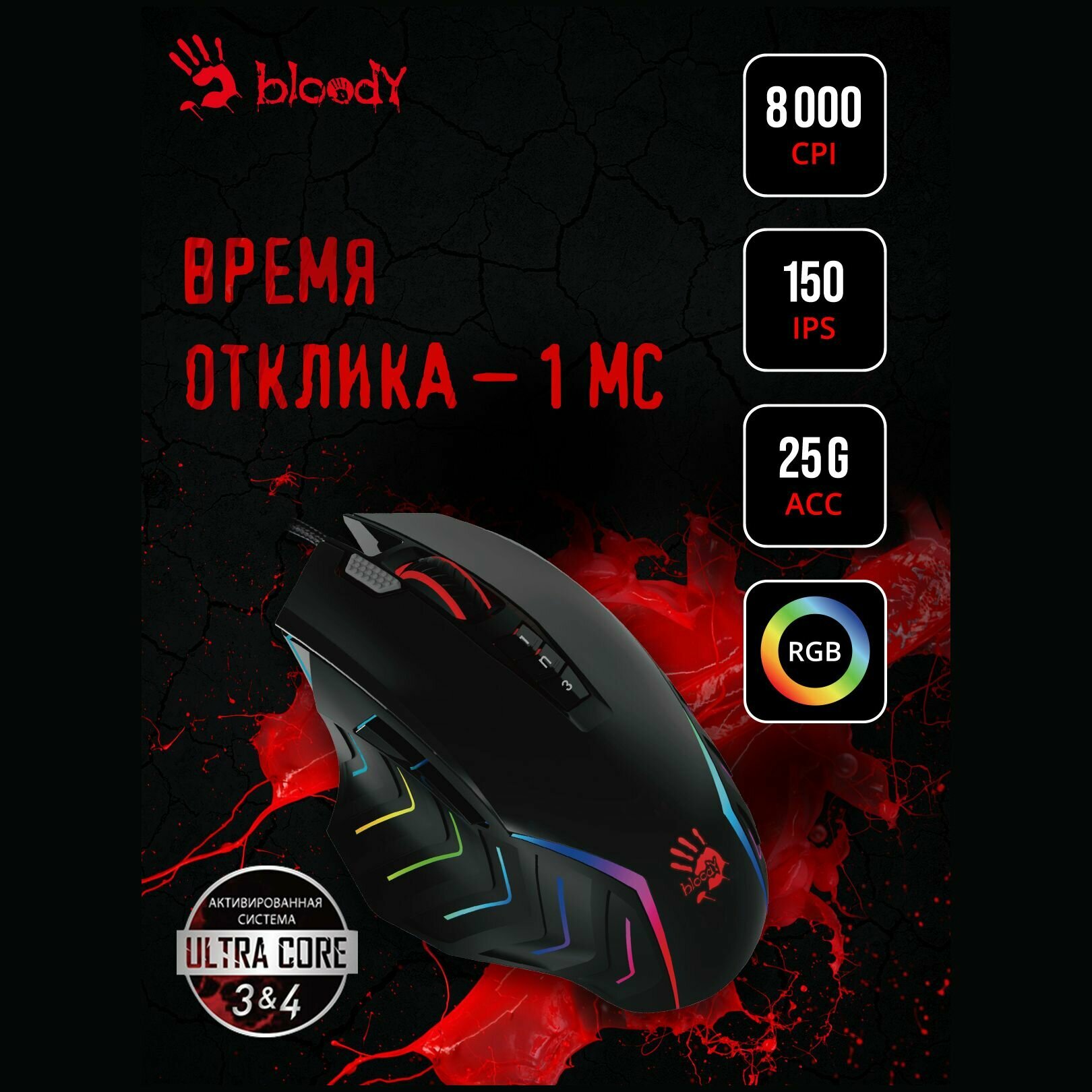 Мышь проводная игровая A4TECH Bloody, игровая оптическая 10000 dpi, RGB мышь с подсветкой