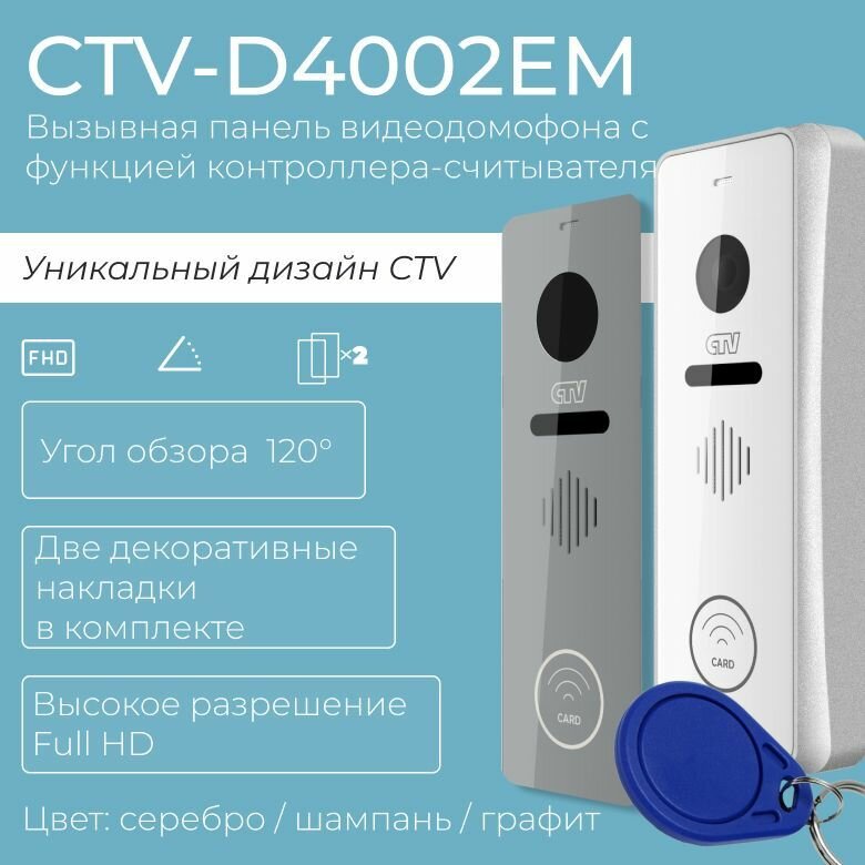 Вызывная панель домофона CTV-D4002EM - Серебро - 2Мп, встроенный считыватель/контроллер карт доступа Em-Marine - Реле