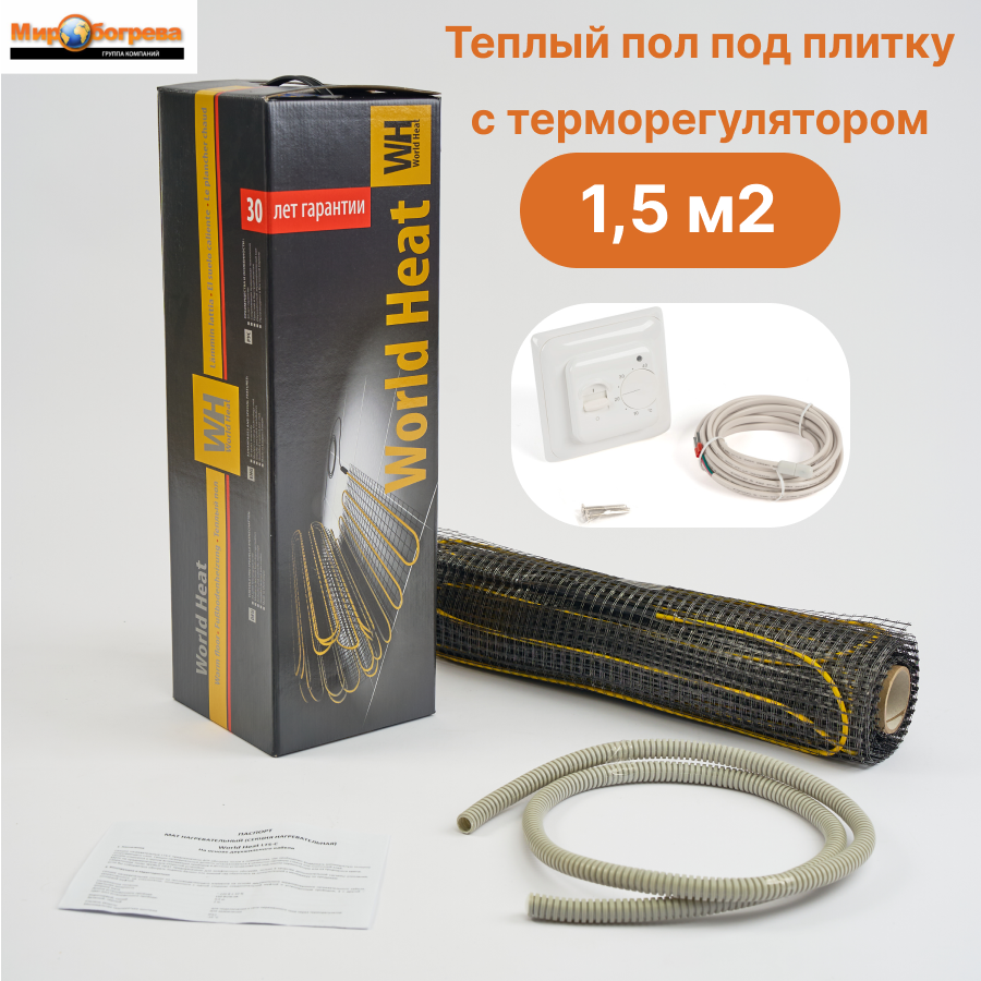 Теплый пол World Heat 1,5 кв м с терморегулятором информация: