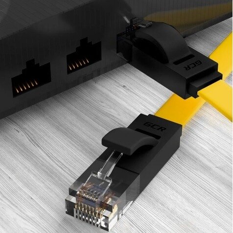 LAN кабель 15м GCR PROF плоский UTP cat.6 10 Гбит/с RJ45 LAN компьютерный кабель для интернета медный контакты 24K GOLD (GCR-LNC62) желтый;черный