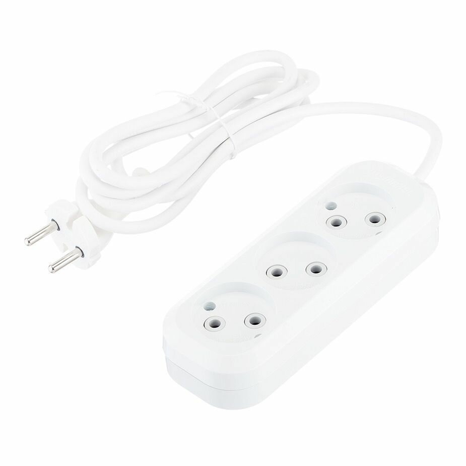 Удлинитель бытовой (MGP122) без заземления 2 м 10 А 250 В 2,2 кВт 3 розетки ПВС 2х0,75 мм2 IP20 белый