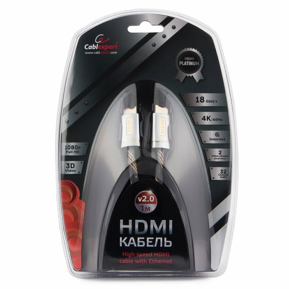 10 цен на Кабель HDMI M/M V2.0 4K Cablexpert CC-P-HDMI02 Platinum - 1.8м серебристый