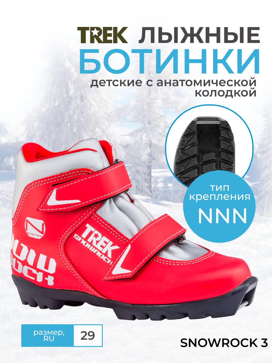Лыжные ботинки NNN TREK Snowrock3 детские красные/логотип серебристый размер RU29 EU30 CM18 информация:
