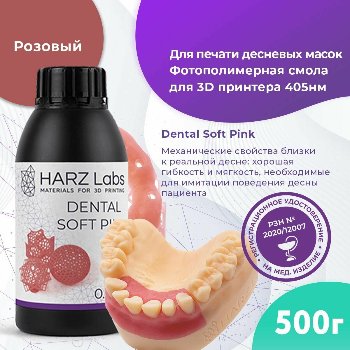 10 цен на Стоматологическая фотополимерная смола для 3D-печати HARZ LABS Dental Soft Pink для LCD/DLP 3D принтеров 365-405 нм (0.5 кг)