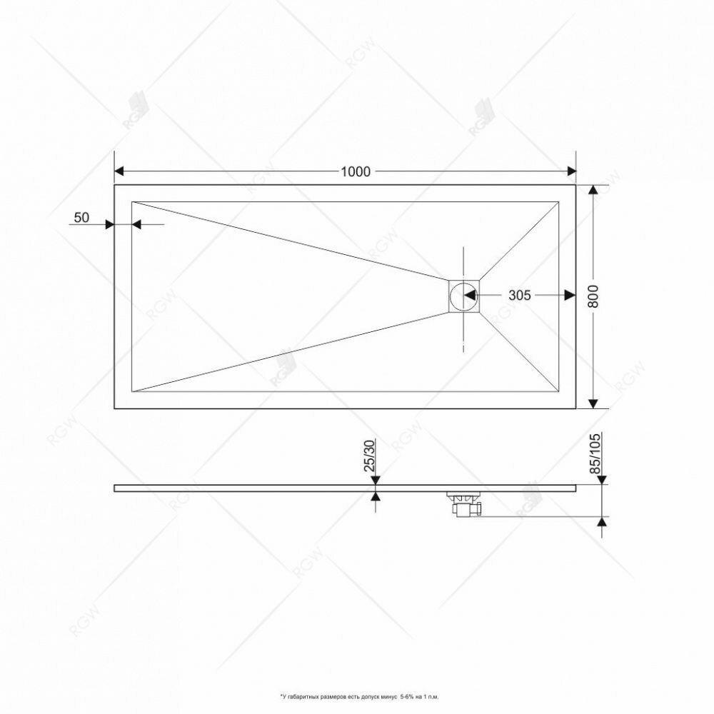 Душевой поддон из искусственного камня RGW STT ST-0108G 80x100x2,5 Графит информация: