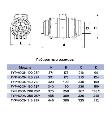 Вентилятор канальный TYPHOON 200 2SP коммерческий