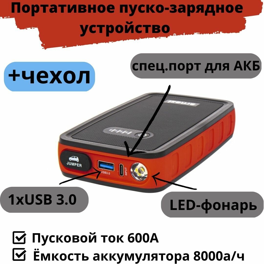 Бустер автомобильный зарядный портативное пуско зарядное устройство для автомобиля PRO-8, 8000 мАч, 600А, Li-Po АКБ