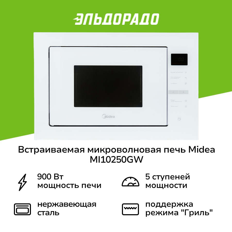 Встраиваемая микроволновая печь MIDEA MI10250GW белый (25 л)