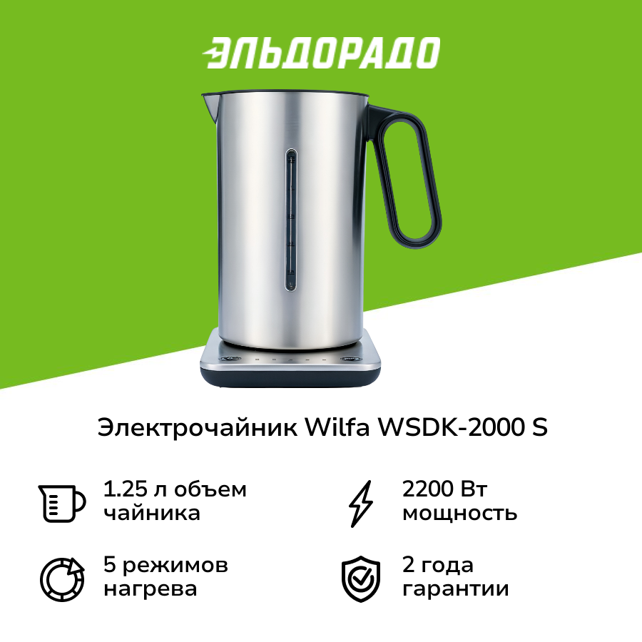 Чайник электрический WILFA WSDK-2000 S, 2200Вт, нержавеющая сталь информация: