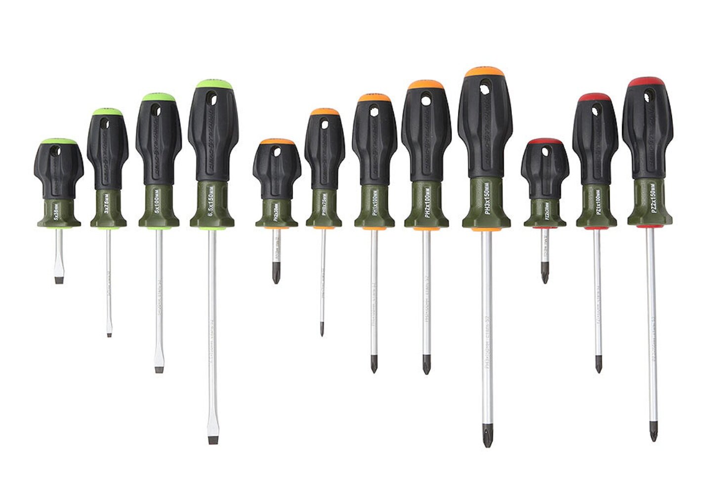 Набор отверток c трехкомпонентными рукоятками (3?75, 5?38, 5?100, 6,5?150, PH0?75, PH1?100, PH2?38,