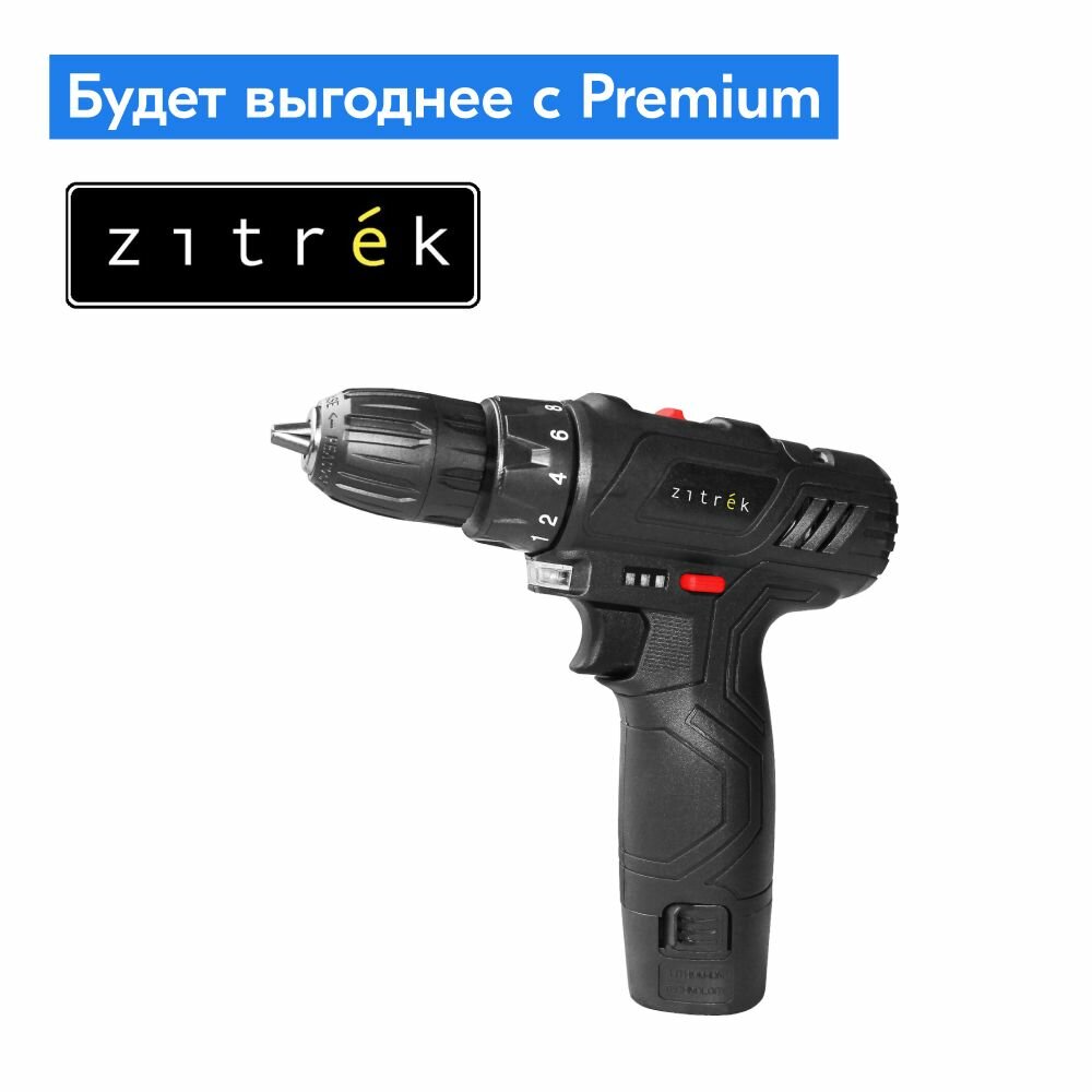 Дрель аккумуляторная Zitrek Crusher 12-Li (12В, Li-ion аккумулятор 2шт, ЗУ, кейс, бита) 2 460 ₽