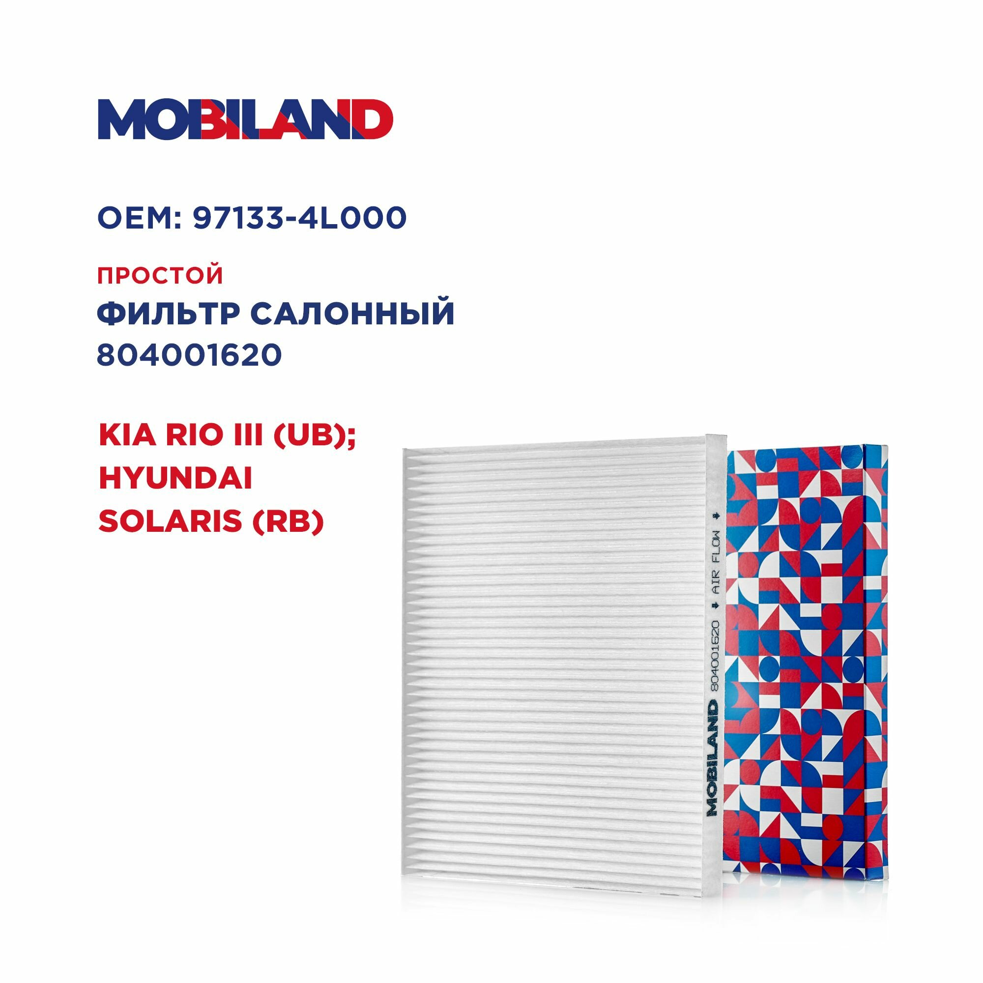 Фильтр салонный для а/м KIA RIO III (UB), HYUNDAI SOLARIS (RB), MOBILAND 804001620