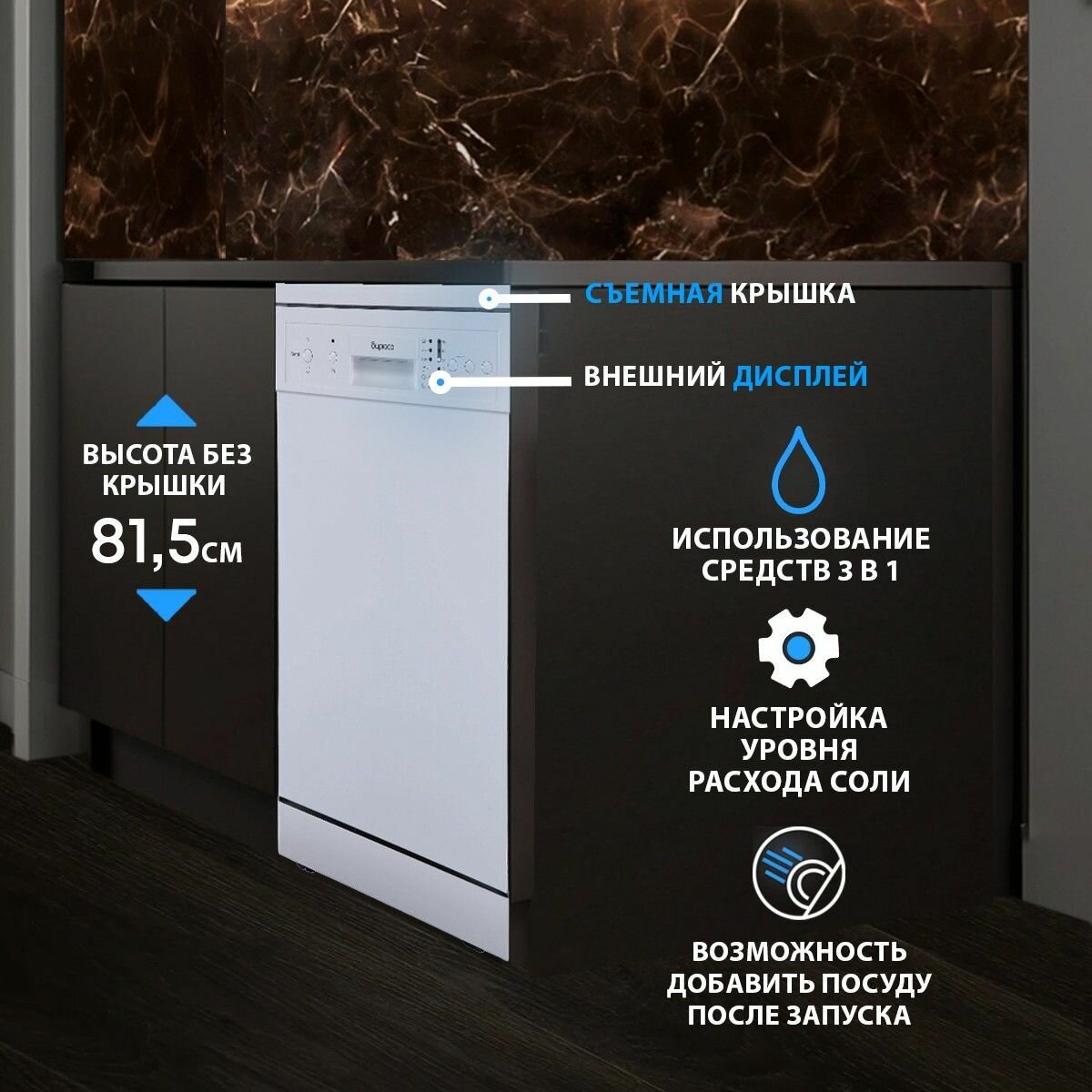 Посудомоечная машина BIRYUSA 55CM DWC-506/7 M, Белая, отдельно стоящая, на 6 комплектов
