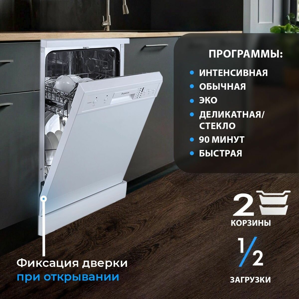 Посудомоечная машина "Бирюса" DWF-409/6 W, 9 комплектов, 6 программ, белая информация: