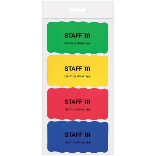10 цен на Стиратели магнитные Staff для магнитно-маркерной доски, 57х107 мм, комплект 4 ШТ., "Basic", ассорти