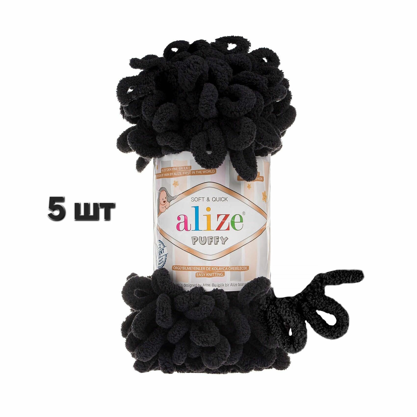 Пряжа ALIZE "Puffy", 100 г 9 м, 100% микрополиэстер, 60 черный, 5 шт информация:
