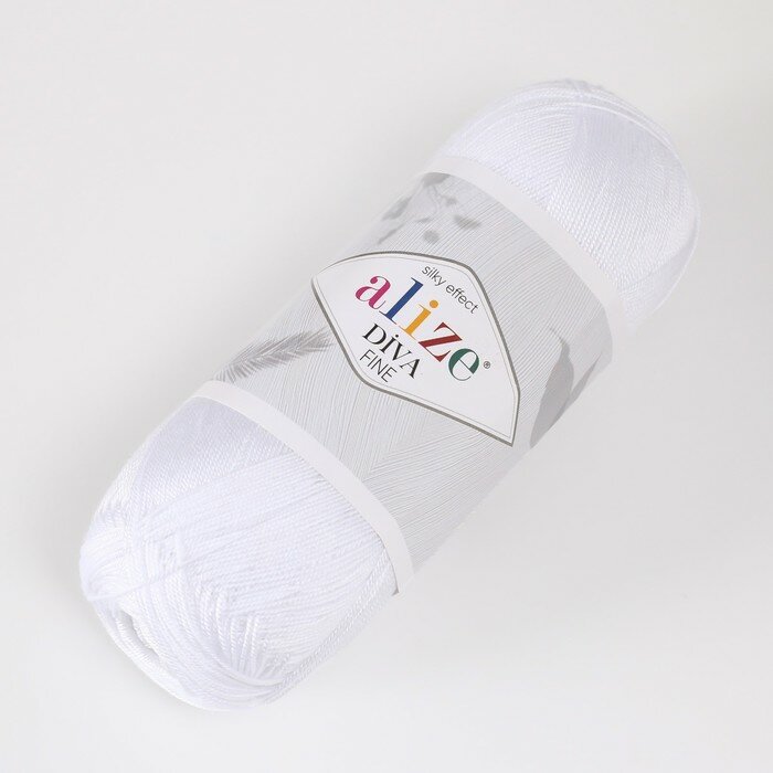 10 цен на Пряжа DIVA FINE ALIZE, белый - 55, 100% микрофибра акрил, 5 мотков, 100 г., 600 м.