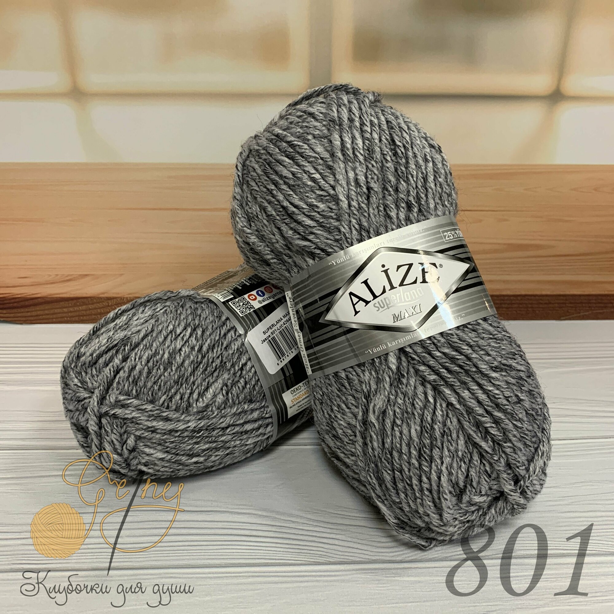 10 цен на пряжа Суперлана Макси Alize (Superlana Maxi) упаковка 5 мотков 100 гр. 100 м. 25% шерсть 75% акрил цвет 801 серый меланж