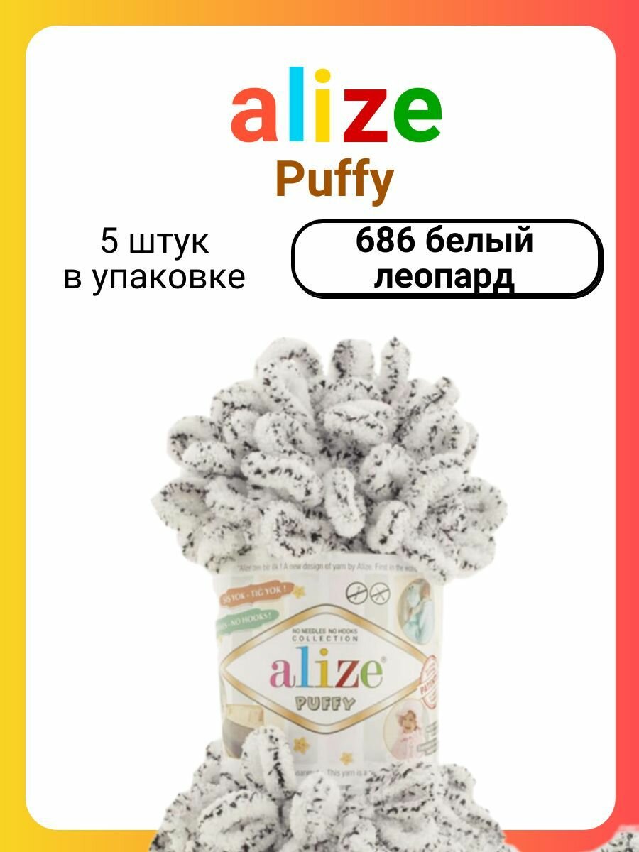 Пряжа Alize Puffy белый леопард (686), 5 шт информация: