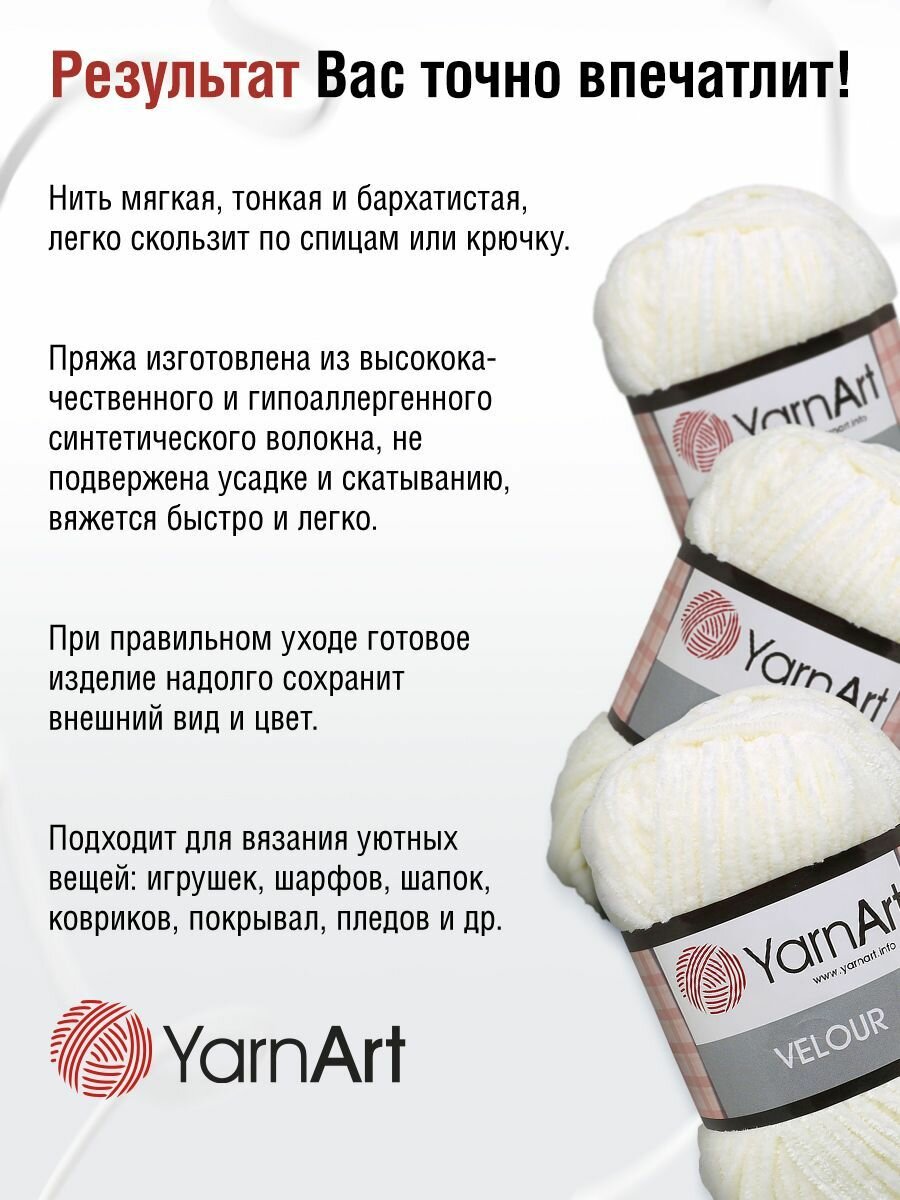 Пряжа для вязания YarnArt 'Velour', 100г, 170м (100% микрополиэстер) (841 молочный), 5 мотков 1 501 ₽