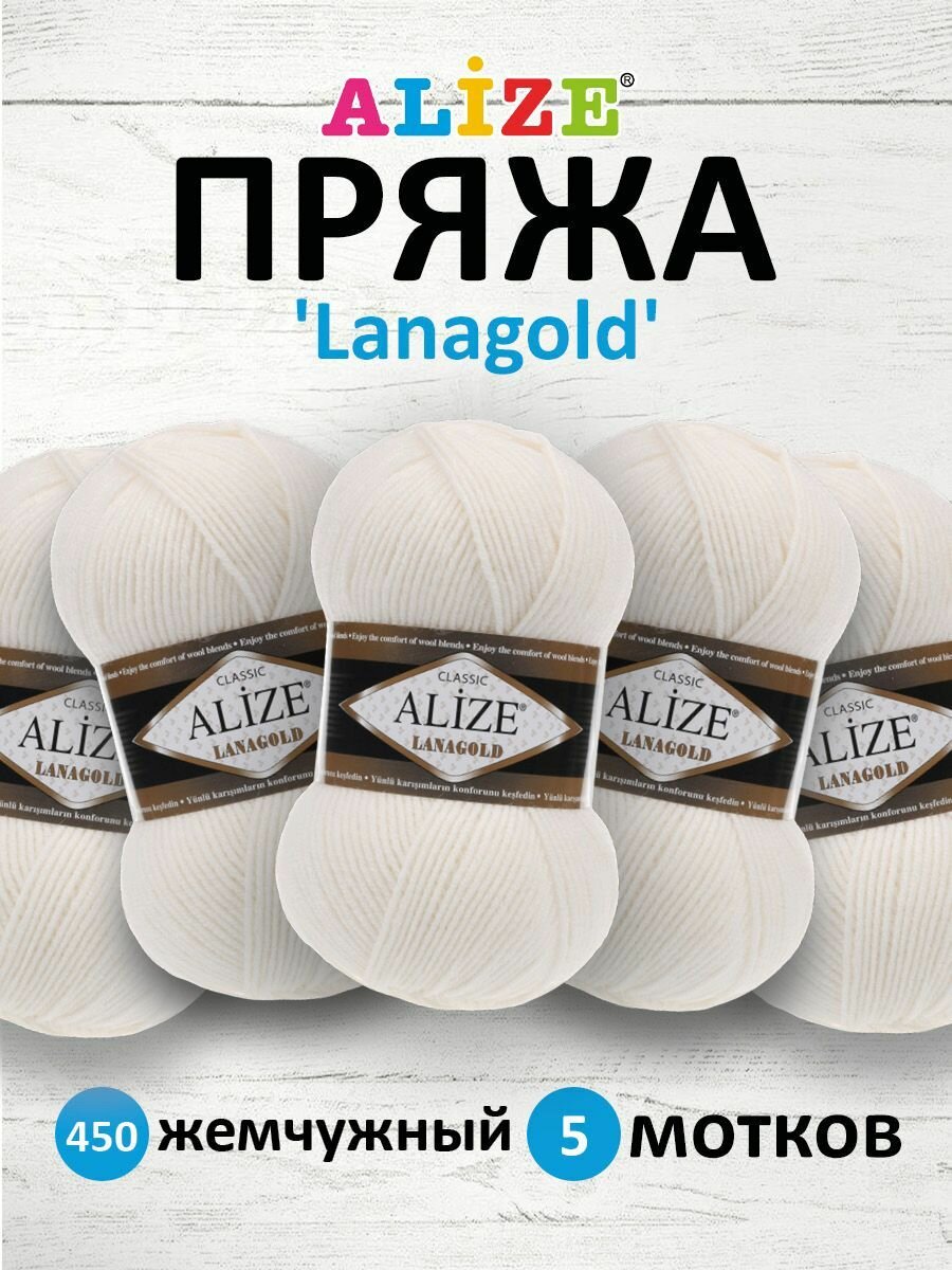 10 цен на Пряжа Alize Lanagold (Ланаголд) цвет жемчужный 450, 49% шерсть, 51% акрил 100г 240м 5шт