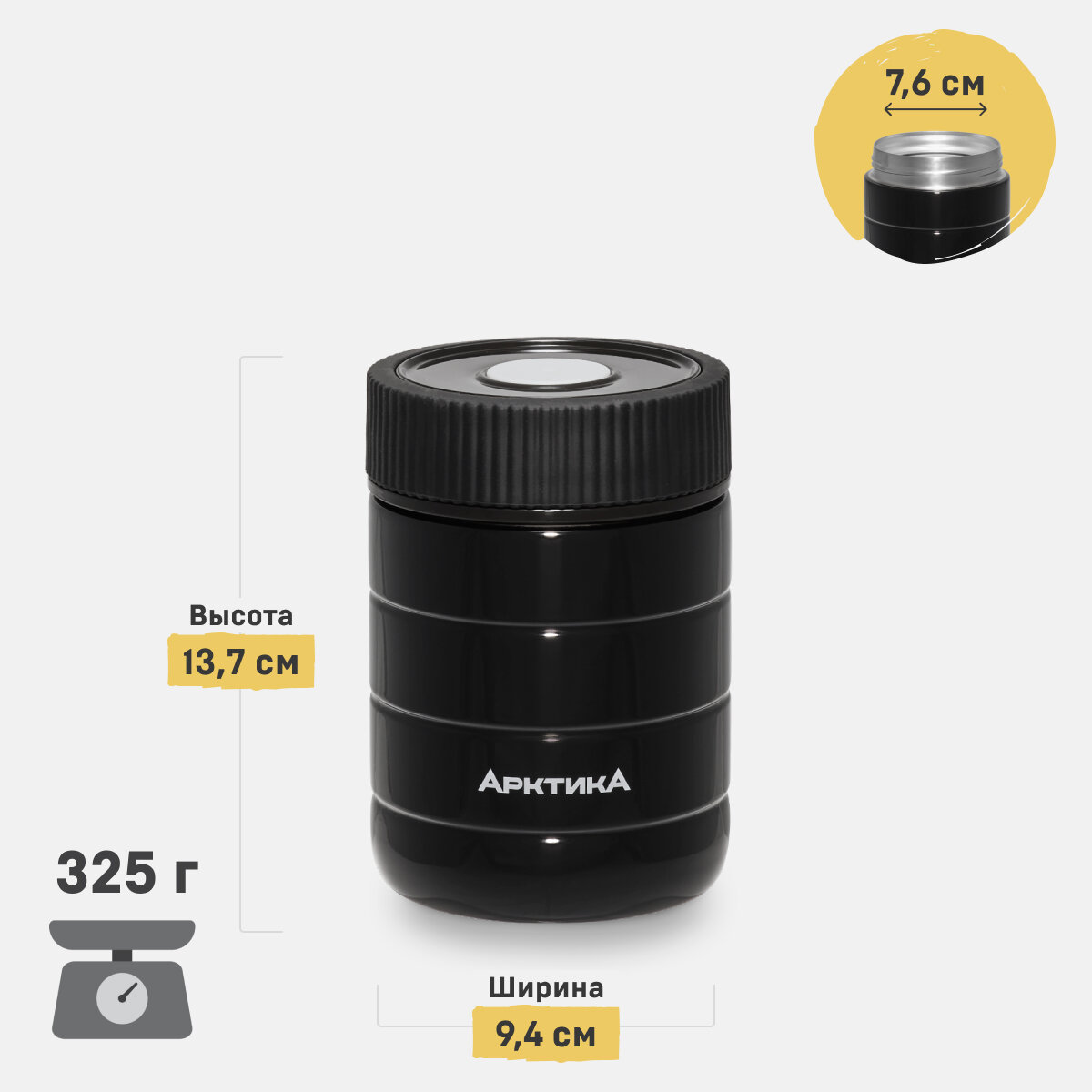 Термос для еды Арктика 307-480 0.48л. желтый/черный картонная коробка (307-480/yel) 307-480/YEL