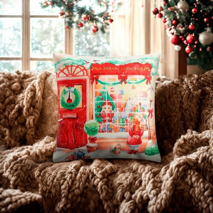 Чехол на подушку «Этель» "Зимние радости", 40*40 см, 100 п\э, велюр