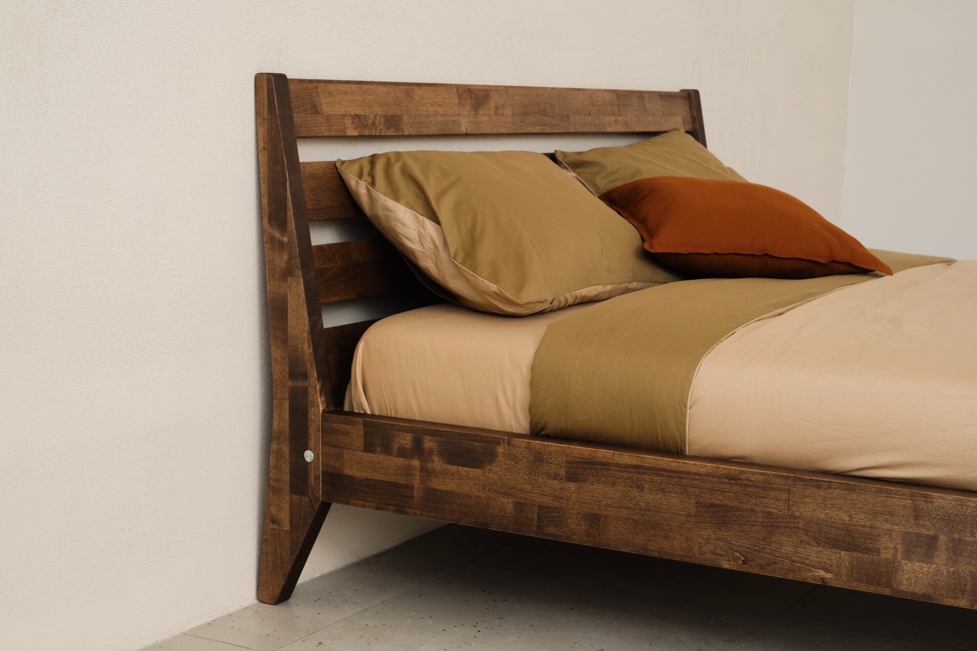 Кровать двуспальная деревянная Olivia 180х200 см темный дуб, из массива березы, Равновесие