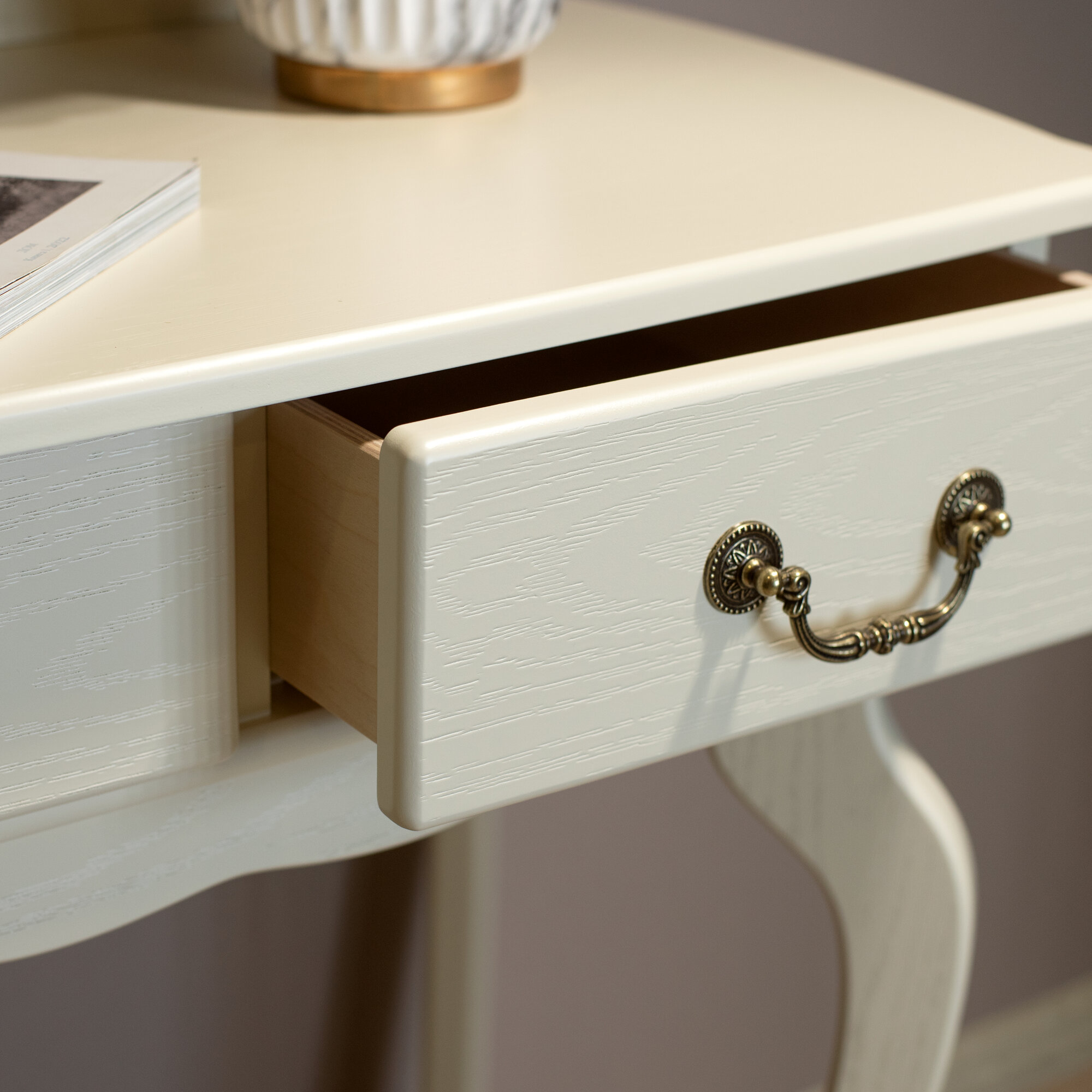 Консольный столик Мебелик в прихожую, спальню Берже 21 с ящиками цвет слоновая кость информация: