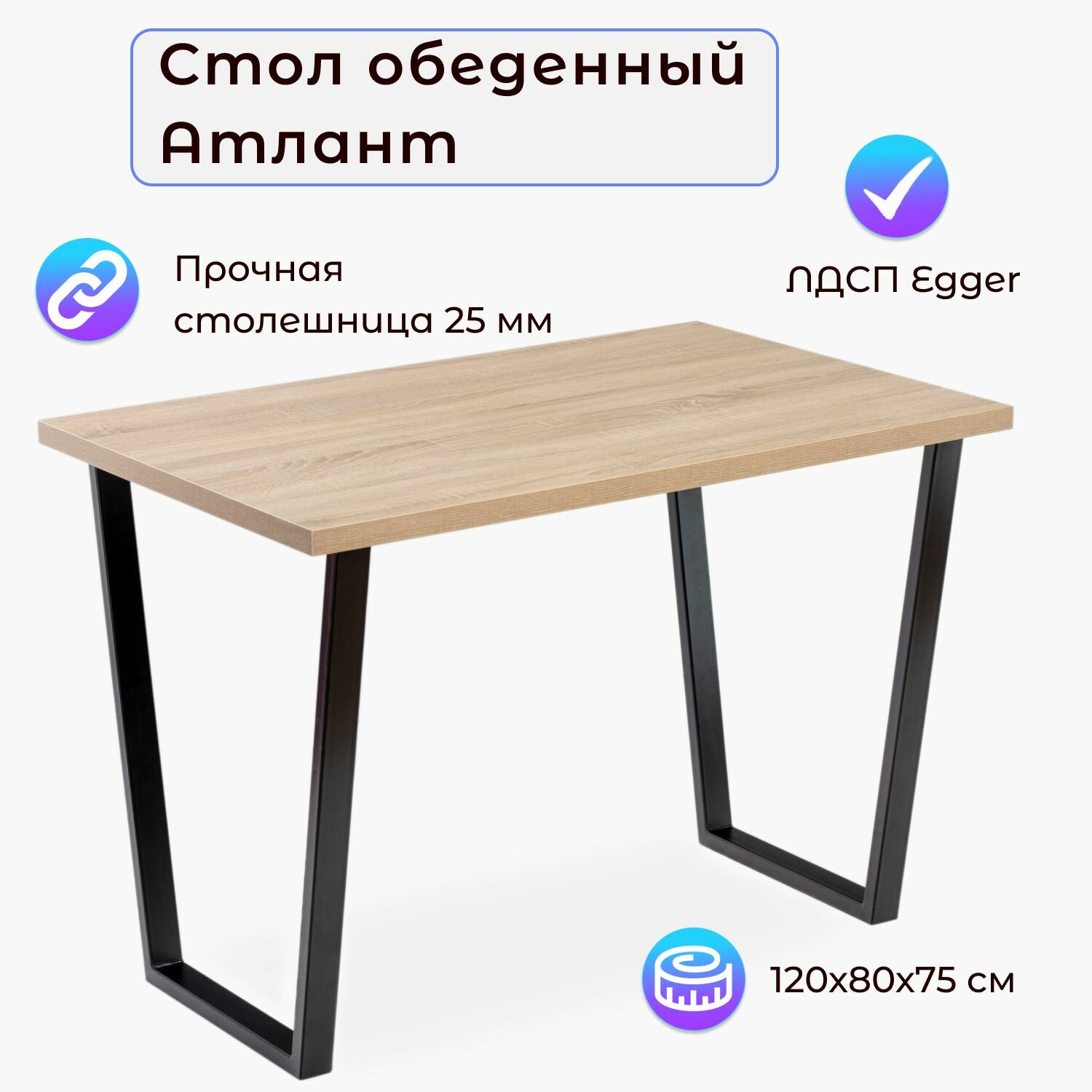 Стол кухонный обеденныйй атлант 08 EGGER: Дуб Небраска нераскладной в стиле лофт 24 300 ₽
