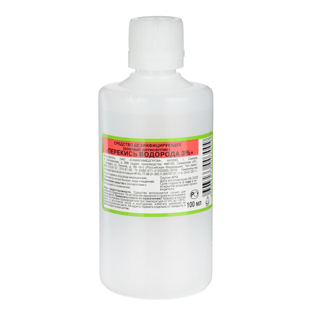 Средство дезинфицирующее Перекись водорода, 3%, пластиковый флакон, 100 мл, Самарамедпром - 1 шт.